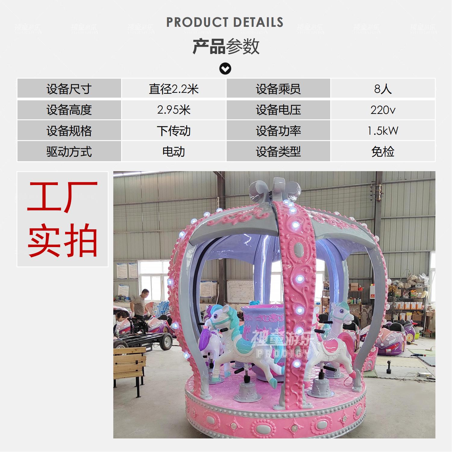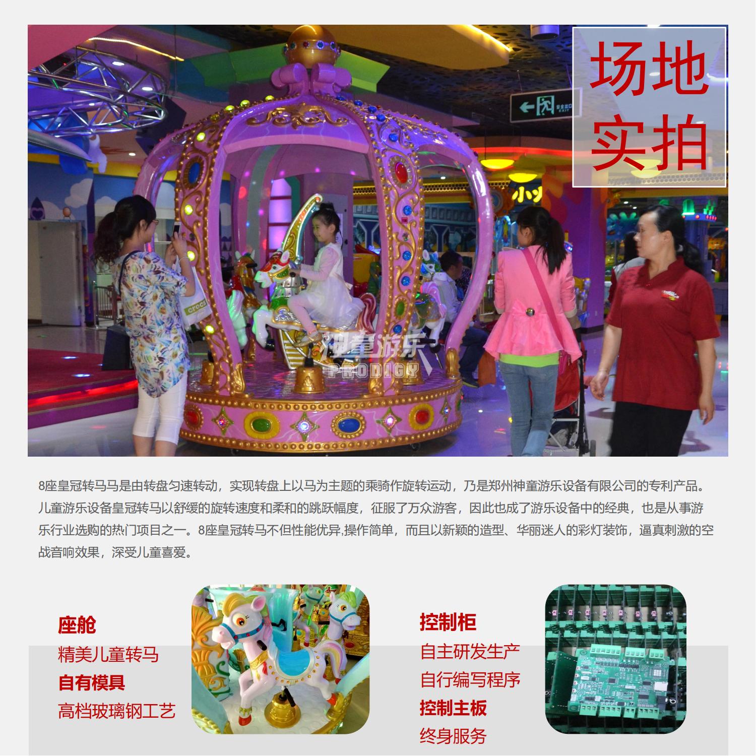 8座皇冠轉(zhuǎn)馬馬是由轉(zhuǎn)盤勻速轉(zhuǎn)動,實現(xiàn)轉(zhuǎn)盤上以馬為主題的乘騎作旋轉(zhuǎn)運動,乃是鄭州神童游樂設備有限公司的專利產(chǎn)品。兒童游樂設備皇冠轉(zhuǎn)馬以舒緩的旋轉(zhuǎn)速度和柔和的跳躍幅度,征服了萬眾游客,因此也成了游樂設備中的經(jīng)典,也是從事游樂行業(yè)選購的熱門項目之一。8座皇冠轉(zhuǎn)馬不但性能優(yōu)異,操作簡單,而且以新穎的造型、華麗迷人的彩燈裝飾,逼真刺激的空戰(zhàn)音響效果,深受兒童喜愛。